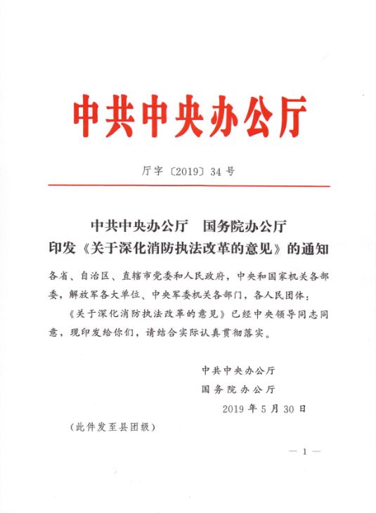 转发 中共中央办公厅 国务院办公厅关于印发《关于深化消防执法改革的意见》的通知