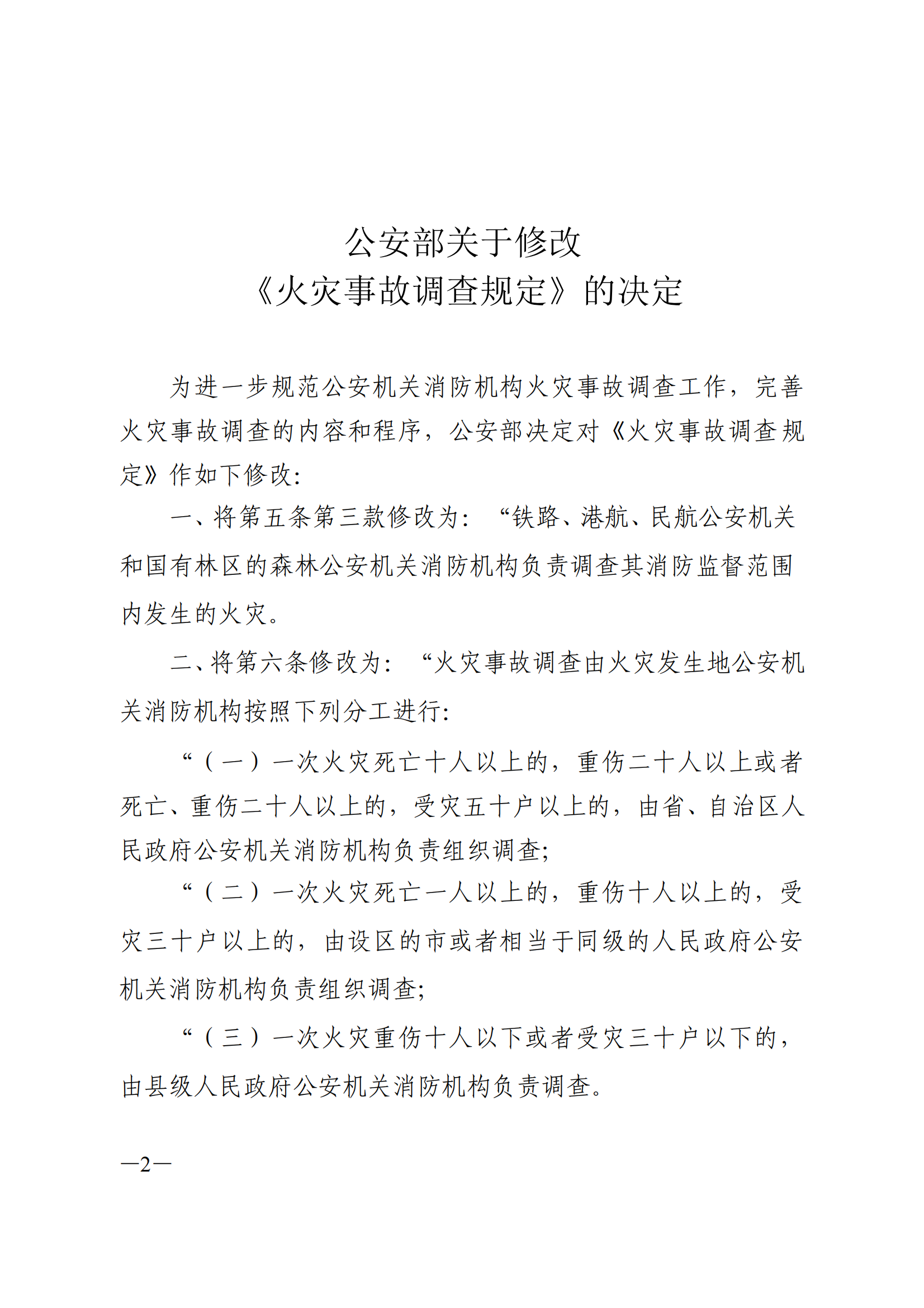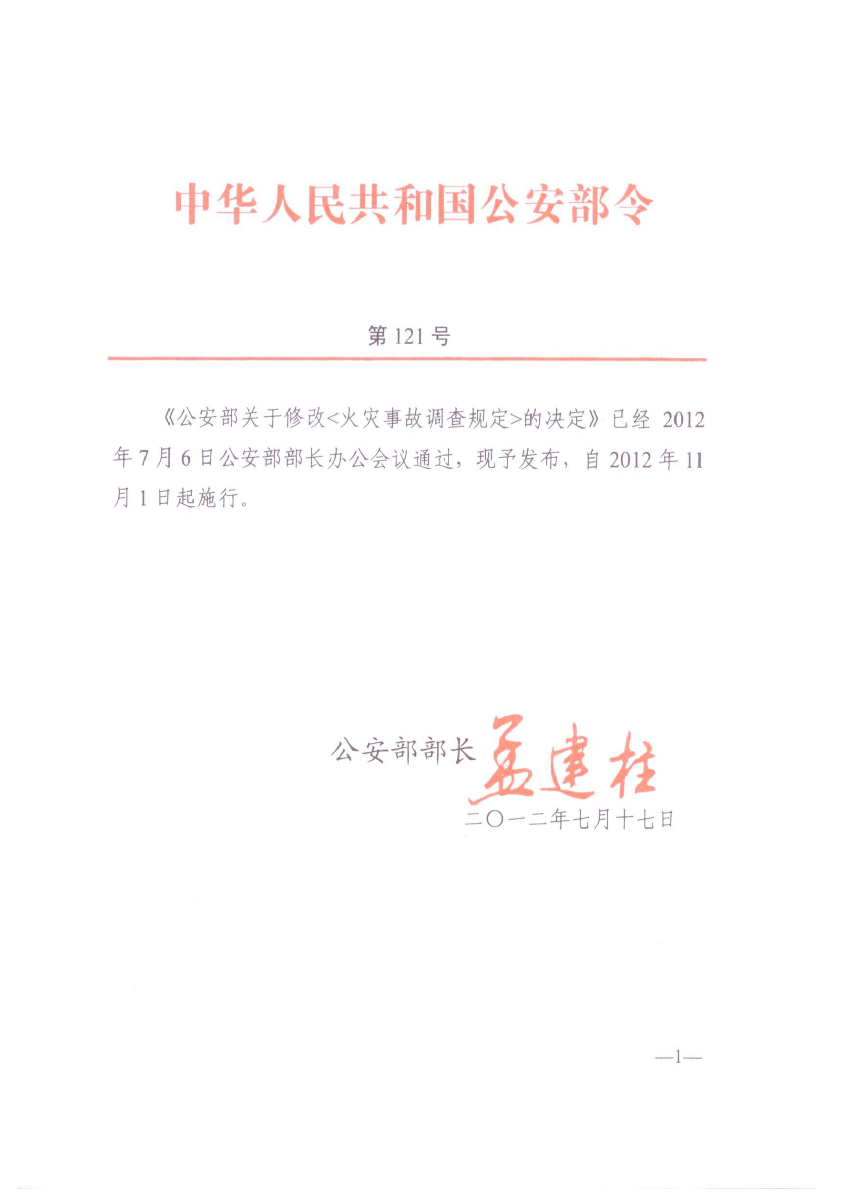火灾事故调查规定(公安部令第121号)